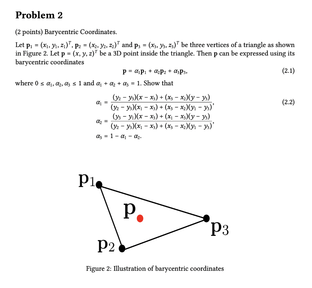 Position (or Point): Represented as \((x',y',w)\) in 2D or \((x',y',z',w)\) in 3D. The w-coordinate for a position is usually 1 (or non-zero in a more general sense). When you convert from homogeneous to Cartesian coordinates, you'd divide by w to get the actual point: \(x=x'/w,y=y'/w\)and in 3D, \(z=z'/w\).